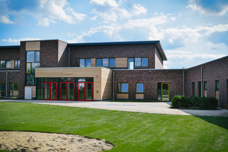 da sich die anforderungen im laufe der zeit bis zur umsetzung veränderten wurde das gebäude um eine zusätzliche krippengruppe und eine 2. kindergartengruppe erweitert. insgesamt hat das gebäude eine nutzfläche von 1.440,00 m2.